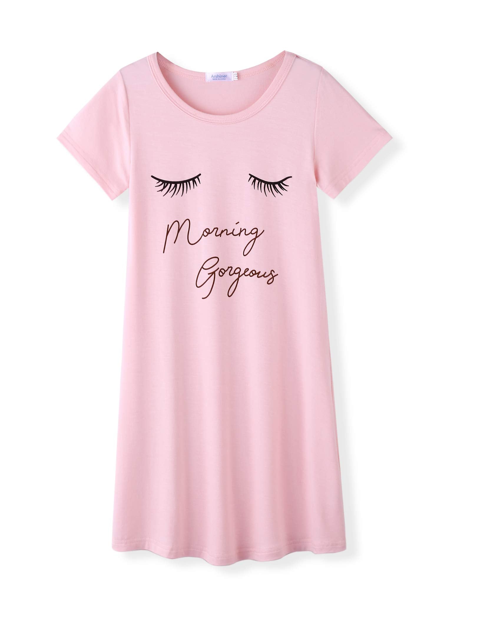 Arshiner Girls Nightgowns Summer Soft Cute Cartoon Print Pajama Sleep Dress for Kids 4-12 Years